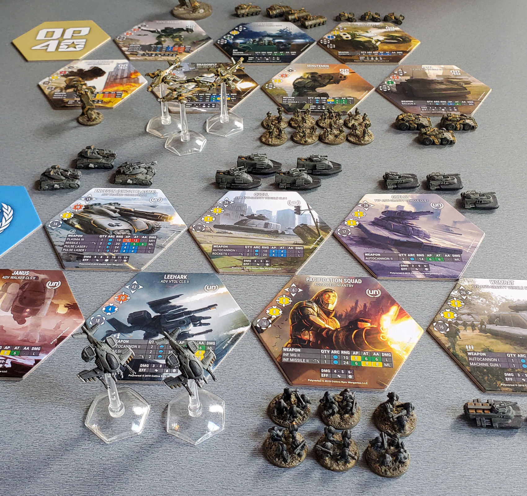 Example Battlegroup Miniatures and Tiles (As shown: some UN Quick Reaction Force and OPFOR Minutemen elements)