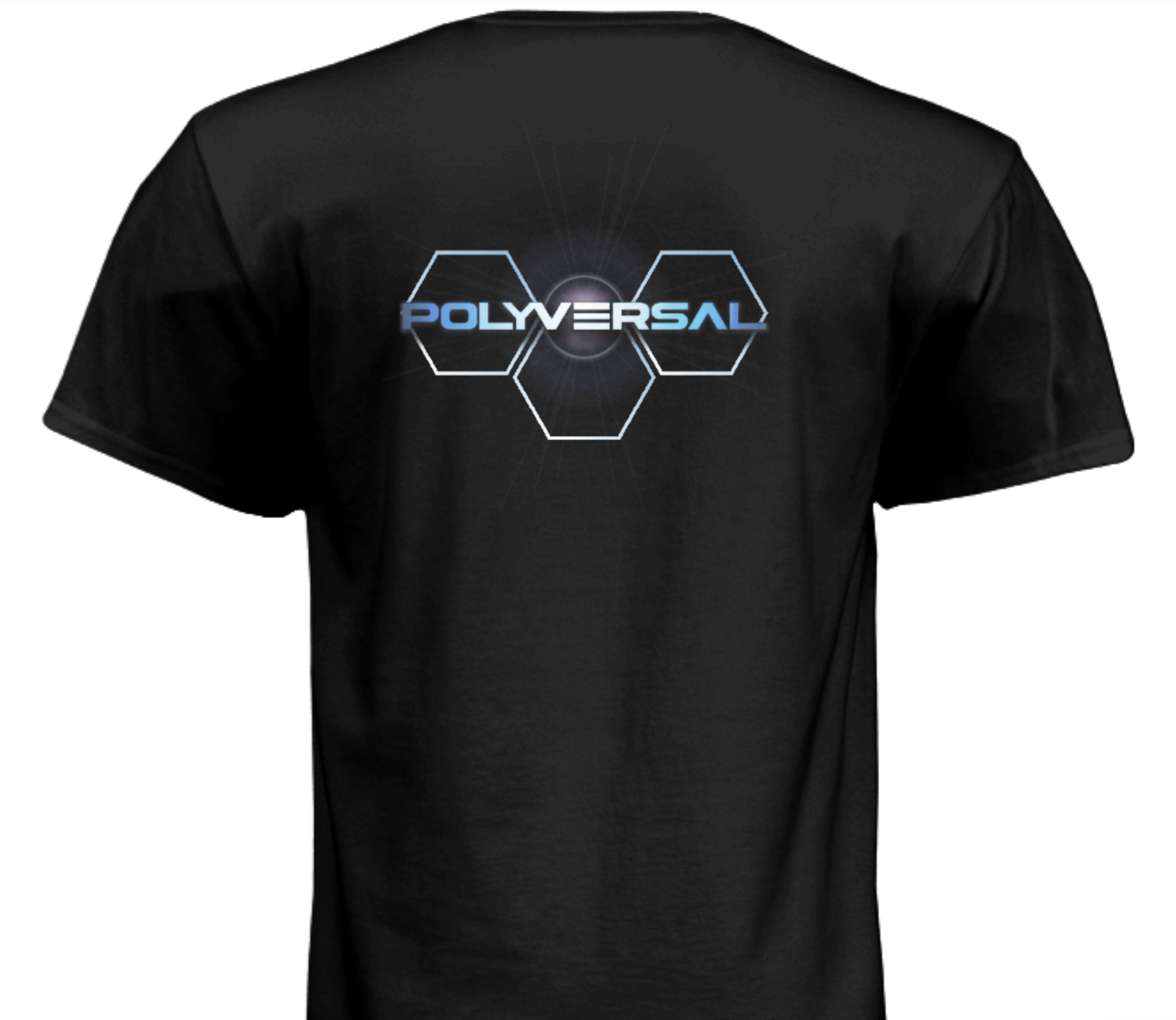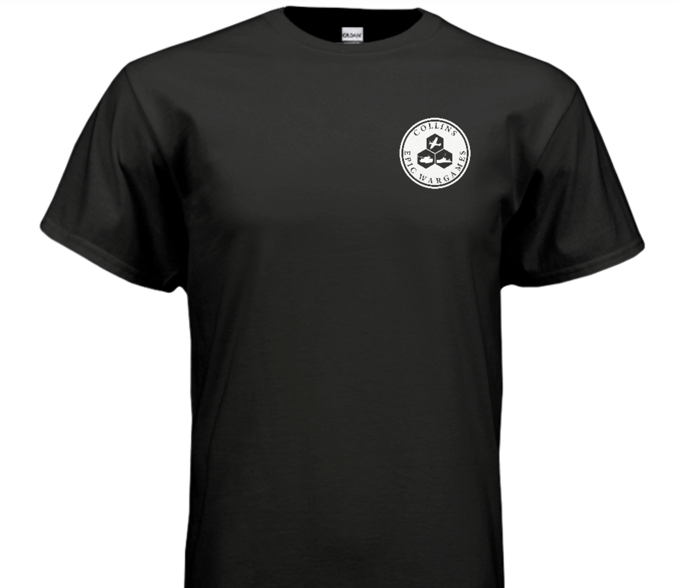This Polyversal T-Shirt features the Collins Epic Wargames Logo on the front and Polyversal Logo on the back. This shirt is in stock and available in Adult sizes Small-5XL and 3 color options (Black, Maroon, and Blue Dusk).